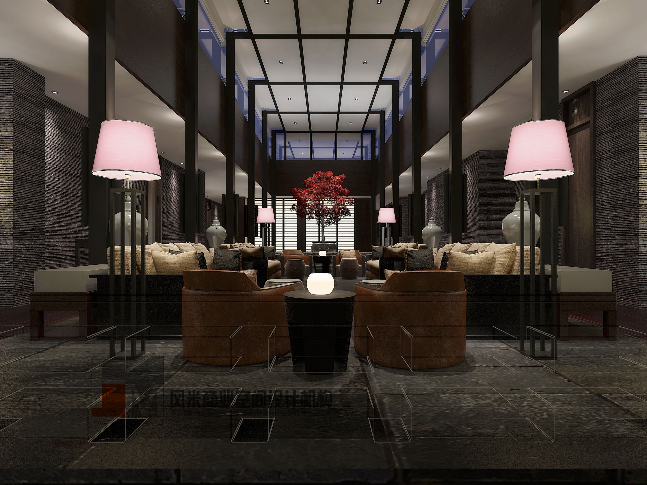 該會(huì)所位于江南區(qū),初步洽談了解會(huì)所主人對(duì)現(xiàn)代中式風(fēng)格頗為偏愛,其名為紅巢,配上楓樹盆栽的點(diǎn)綴讓整個(gè)會(huì)所在人們心中留下秋天的韻味。