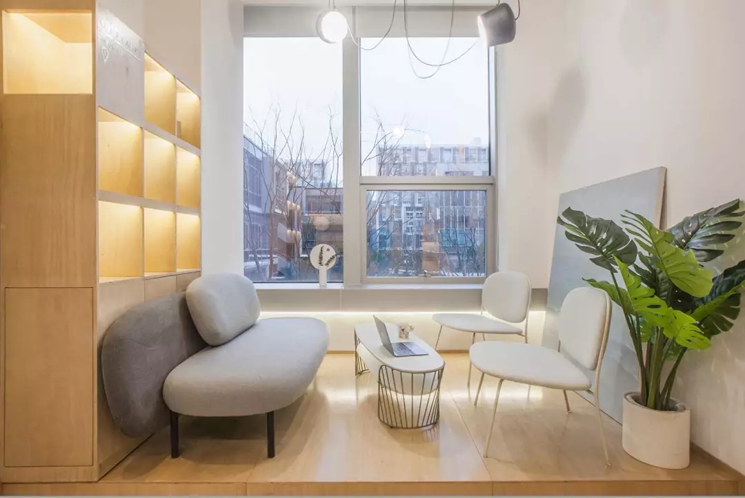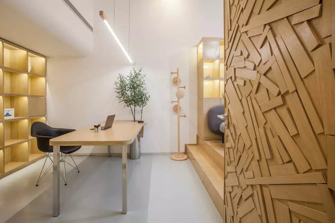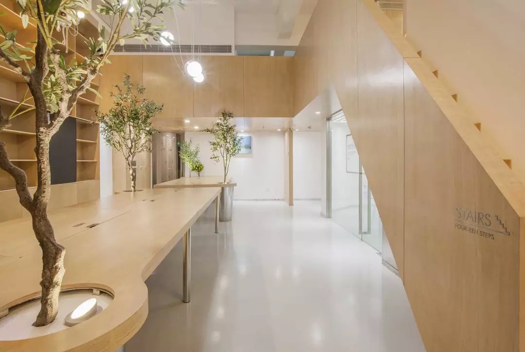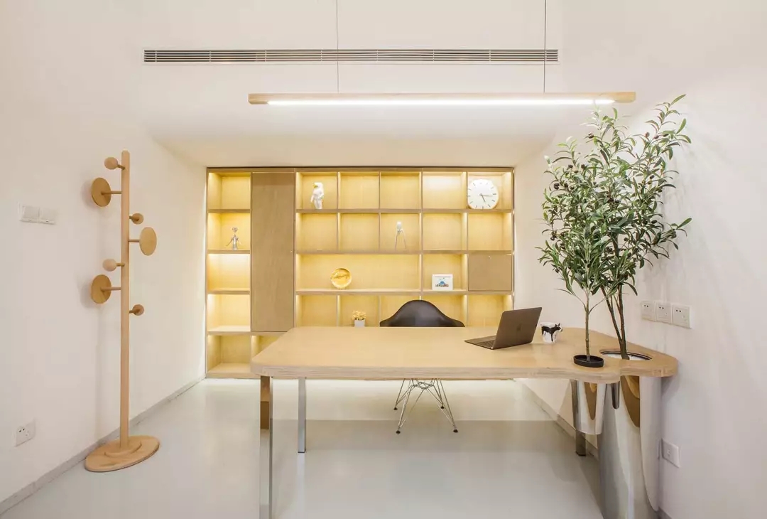 該項(xiàng)目位于上海市閔行區(qū)七寶萬科國際;我們希望工作室足夠的輕松、溫性、創(chuàng)意,于是通過顯性與隱性的符號(hào)對(duì)我們的目標(biāo)進(jìn)行構(gòu)建;空間用了大量溫暖的木色,并組成木質(zhì)的空間體塊,這些體塊以整個(gè)白色空間為背景,進(jìn)行功能與空間節(jié)奏上的構(gòu)筑: