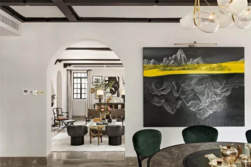 從建筑外觀到室內(nèi),拱門設(shè)計無疑是空間中最引人注目的亮點(diǎn),經(jīng)典的幾何線條在空間交匯處劃下瀟灑自由的一筆,破格又落定,促成雙空間的融合。皆因設(shè)計師黃全對細(xì)節(jié)的一絲不茍,每一個構(gòu)件都在美學(xué)態(tài)度的牽引下找到最合適的表現(xiàn)形式。