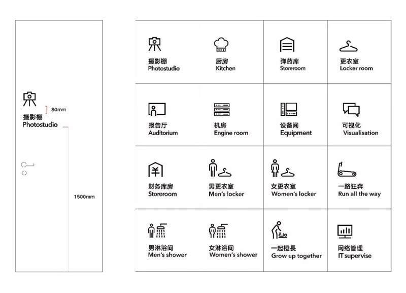 辦公室裝修內(nèi)的環(huán)境圖形設(shè)計(jì)不同于常規(guī)的室內(nèi)軟裝設(shè)計(jì),它相比軟裝設(shè)計(jì)更偏向平面視覺,辦公室裝修內(nèi)的環(huán)境圖形設(shè)計(jì)內(nèi)容主要可以分為兩大類:第一類是包含了辦公室設(shè)計(jì)內(nèi)的導(dǎo)視標(biāo)識(shí)系統(tǒng),例如門牌部門標(biāo)識(shí)疏散指示消防標(biāo)識(shí)設(shè)備間標(biāo)識(shí),甚至門、柜體的推拉指示等。