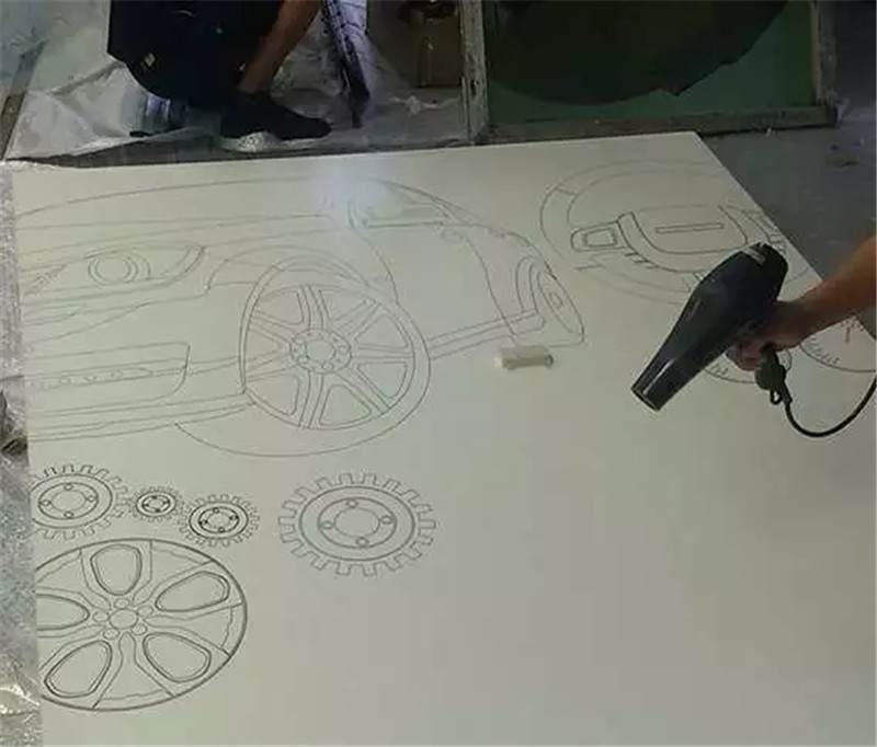 這幅畫是最初設(shè)計(jì)的圖案,圖形繪制的大粉筆畫,它的好處是可以定期的更換,就像黑板報(bào)一樣來制定不同的主題,就員工的活動(dòng),員工的留言簽字都可以在這體現(xiàn),如同活的展示墻。