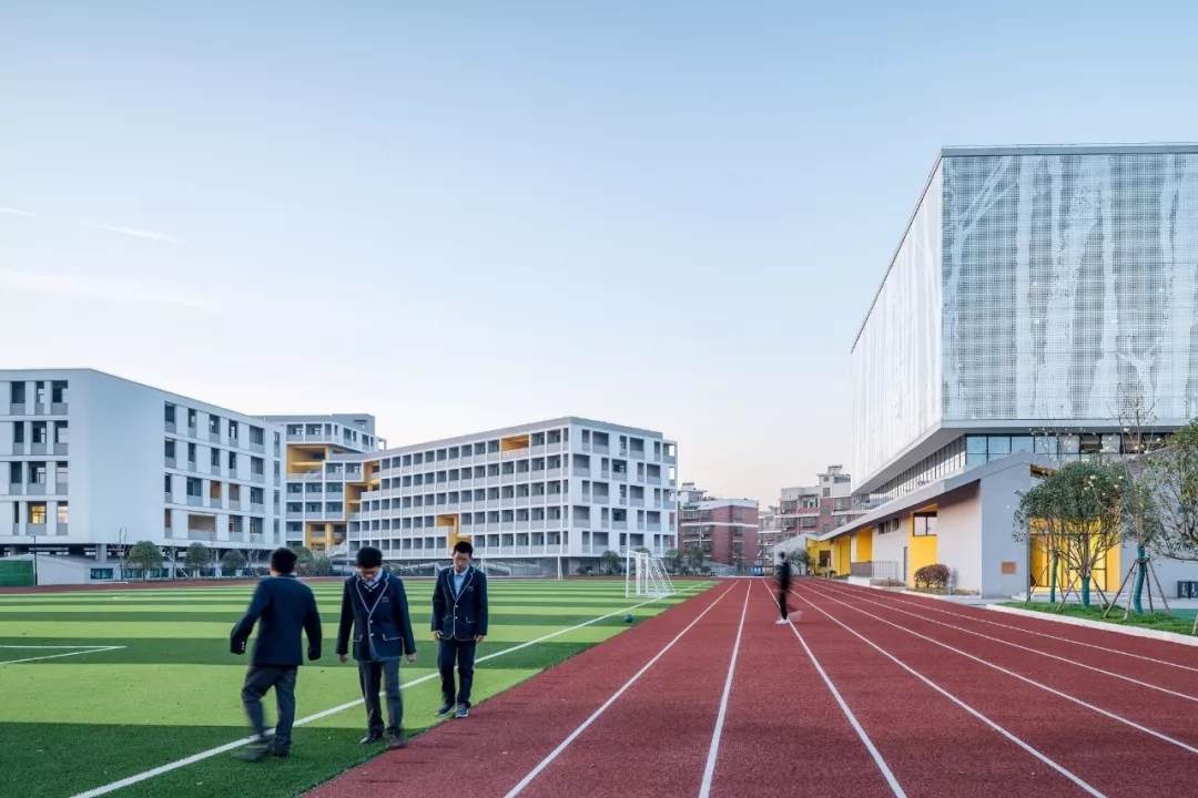 由零壹城市建筑事務(wù)所(LYCS Architecture)從2016年開(kāi)始設(shè)計(jì)的義烏新世紀(jì)外國(guó)語(yǔ)學(xué)校如今已投入使用,也剛結(jié)束了它的第一學(xué)期。這個(gè)位于浙江省義烏市主城區(qū)的學(xué)校是杭州新世紀(jì)外國(guó)語(yǔ)學(xué)校的分校,共有48個(gè)班的小學(xué)與24個(gè)班的初中。它作為僑商回國(guó)的開(kāi)篇之作,也是零壹城市一直以來(lái)持續(xù)關(guān)注與探究的高密度城市與教學(xué)空間設(shè)計(jì)問(wèn)題的典型實(shí)踐之一。