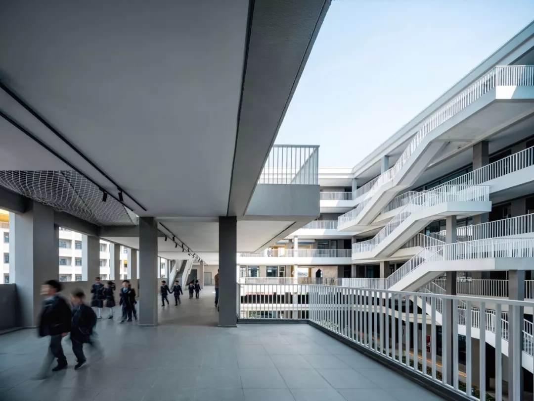 整個(gè)學(xué)校的概念策略、空間形態(tài)和場(chǎng)所定義描繪了一副全新生動(dòng)的體驗(yàn)式教學(xué)圖景,設(shè)計(jì)作為實(shí)現(xiàn)的媒介為義烏新世紀(jì)外國(guó)語(yǔ)學(xué)校的師生提供了更多的教育體驗(yàn)和可能性。而貫穿其中的設(shè)計(jì)聚焦點(diǎn):教育類空間在城市高密度環(huán)境中的微妙立場(chǎng)、國(guó)際化教學(xué)體系與傳統(tǒng)國(guó)學(xué)文化兼容并重的有機(jī)教學(xué)空間建筑空間、面向未來(lái)的傳統(tǒng)空間體驗(yàn)營(yíng)造,也是飛速城市化進(jìn)程中的中國(guó)所普遍面臨的問(wèn)題,更是零壹城市一直以來(lái)并且會(huì)持續(xù)關(guān)注的高密度城市與教育空間問(wèn)題的研究點(diǎn)。