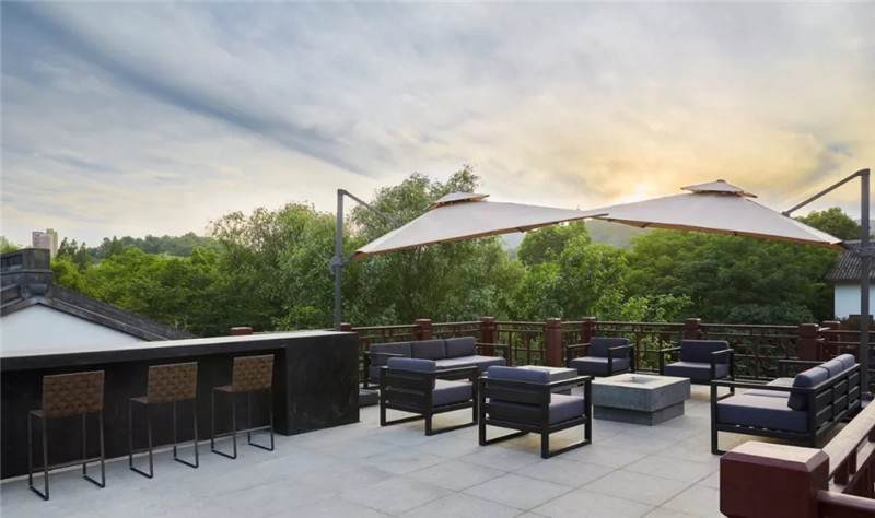 露臺(tái)是包廂功能場(chǎng)景向室外的延伸,為賓客提供了聚會(huì)絕佳場(chǎng)所。聽(tīng)風(fēng)望水、閑看流云,讓人悠然自在,回歸詩(shī)意心境。