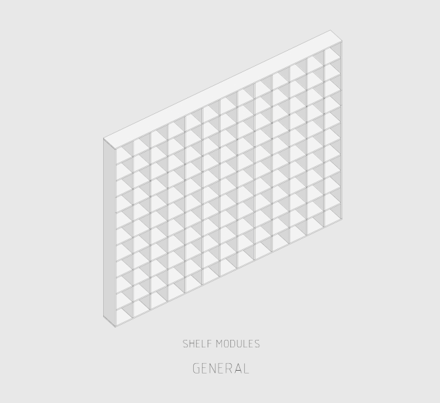 Boxes are surrounded by book shelves to hold books and objects that becomes the interface of boxes, which create an effect of translucencies.