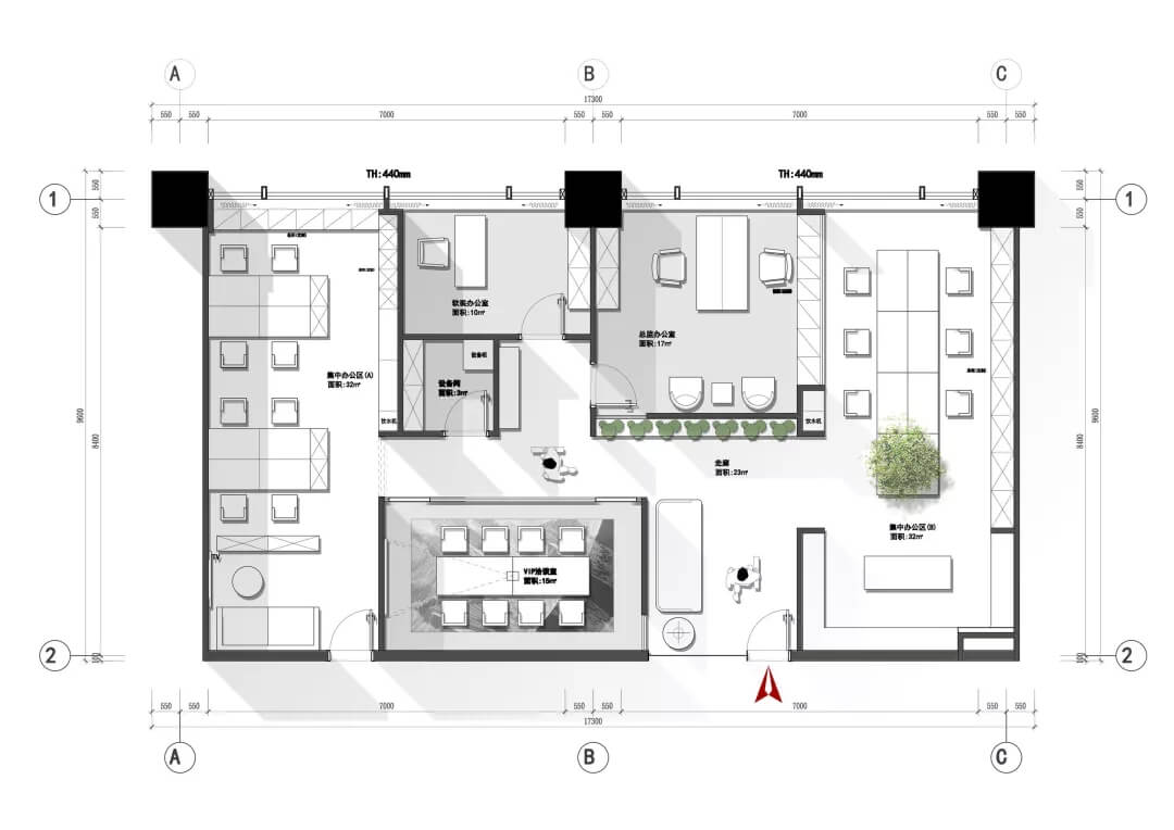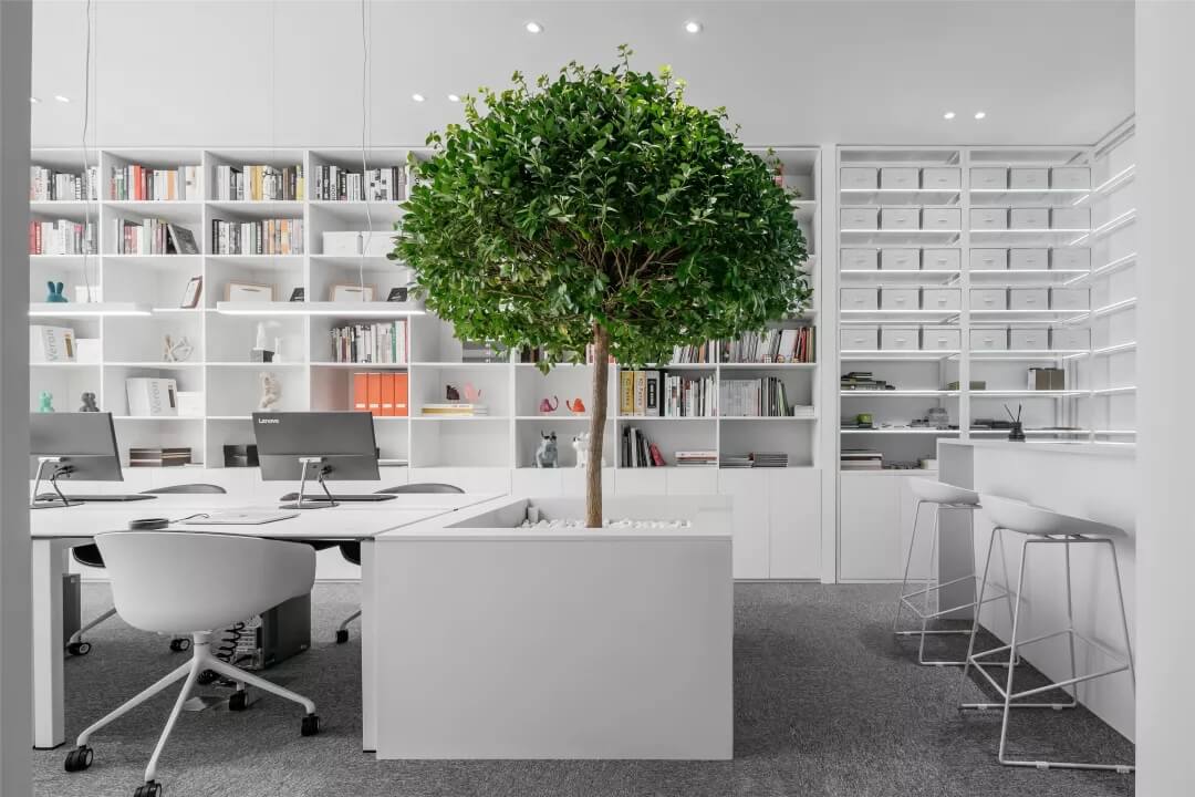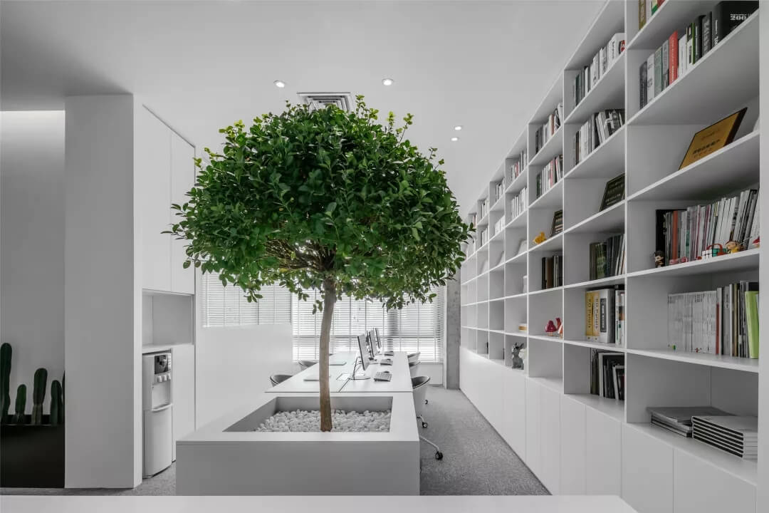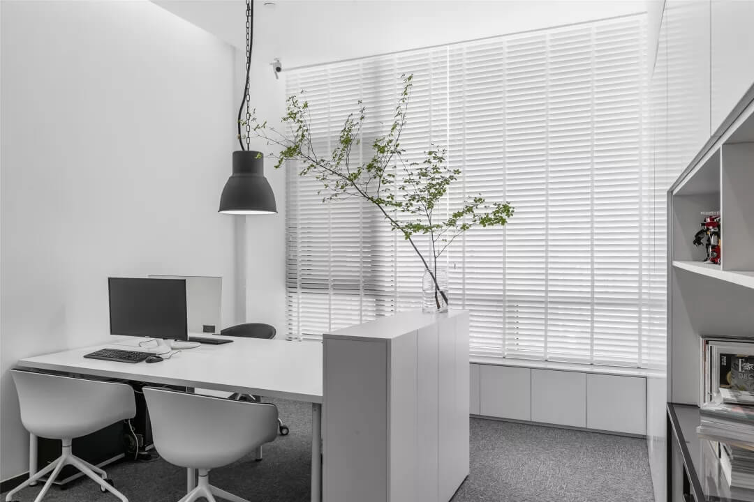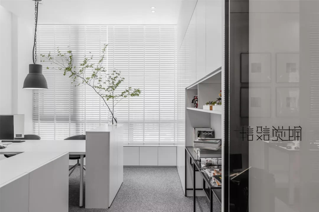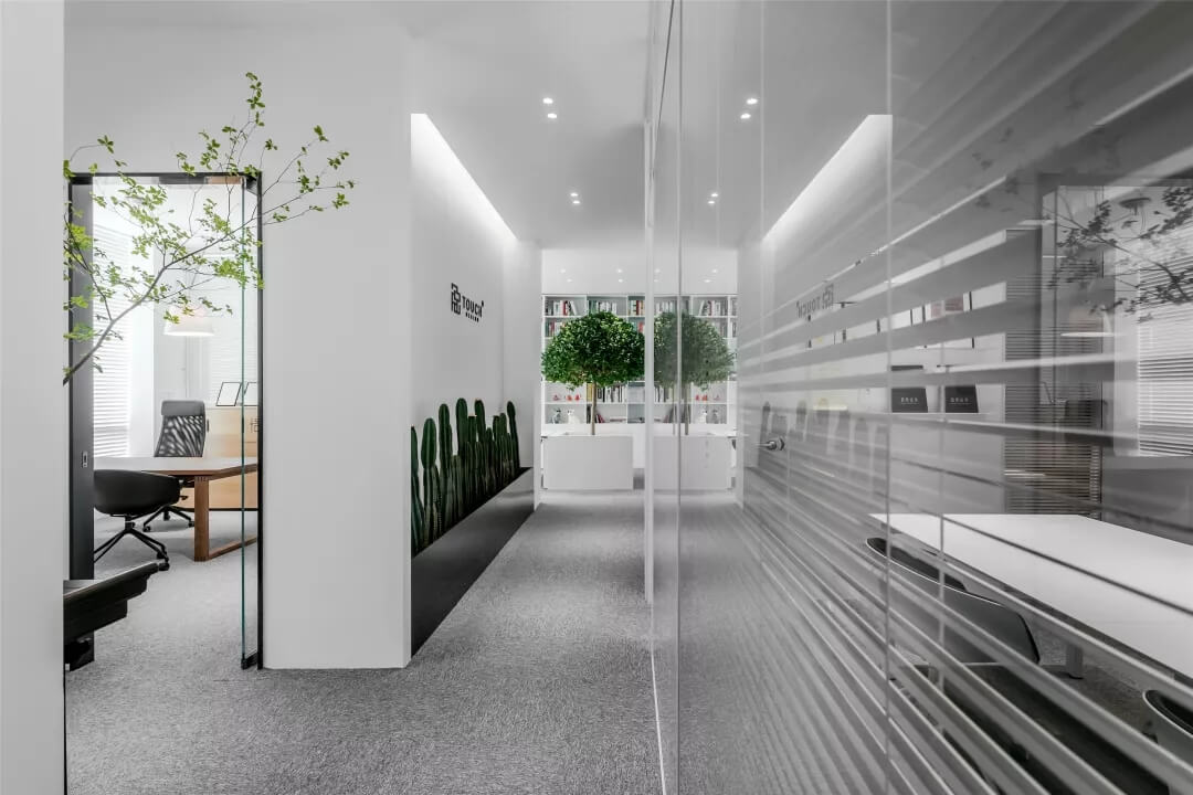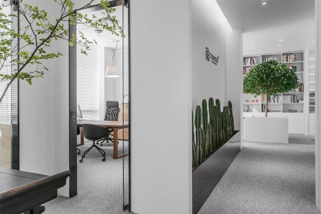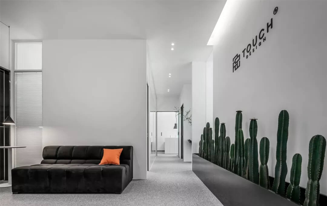 刪繁就簡(jiǎn),以最經(jīng)典的白色為主題搭配色調(diào),沒有繁瑣的辦公室設(shè)計(jì)和過多的裝飾,減去辦公中的壓抑感。通過將自然純凈的白色與沉靜黑色相結(jié)合,將品牌形象簡(jiǎn)潔地呈現(xiàn)表達(dá),同時(shí)為左右空間的過渡創(chuàng)建和諧觀感。純白的墻面,接近心靈的澄凈;仙人掌是視覺的焦點(diǎn),恣意生長(zhǎng)、堅(jiān)韌、夯實(shí)根基,也正寓意著公司的設(shè)計(jì)理念:有所依、有所仗、有所長(zhǎng)。