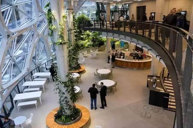 亞馬遜首席園藝師羅·戈里亞多(Ron Gagliardo)說(shuō):“我們把工作環(huán)境和自然聯(lián)系起來(lái),讓大家遠(yuǎn)離普通辦公桌,在這里看不到辦公桌和小隔間。”