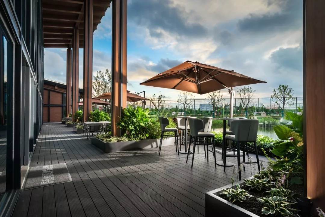 自然的青翠綠意與質樸的啤酒桶木藝氣質互融,靈韻交加,酒香沁人,不加過多修飾地圍合出一隅相對靜謐的臨窗休閑區(qū)。在這里,設計透過落地玻璃窗的相隔將內外視域完全打開,陽光傾灑進來,引入截然不同的清新與濃密的自然舒適度,外在景觀與內在布設氣質相合。