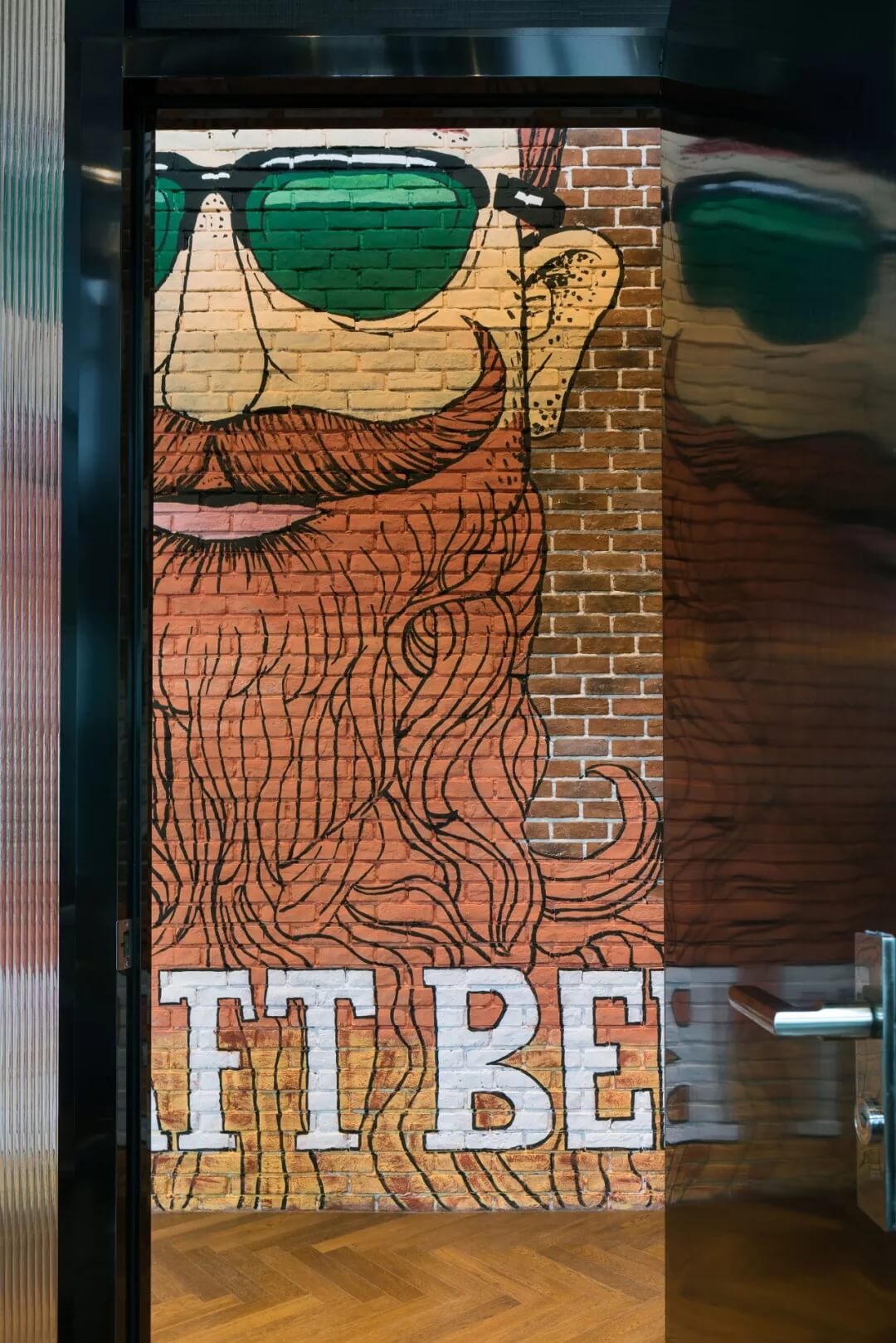 工業(yè)風的精髓在于,在原空間樸拙素簡的本真狀態(tài)下延展其自由隨性的氣質,在粗獷的空間架構中消解拘束感,呈現出大氣又不失細膩的美感。粗礪的紅磚墻、朋克夸張的墻畫涂鴉、裸露的管道線路、復古做舊的齒輪掛件、紅黑交接的鉚釘吧臺......統(tǒng)攝進工業(yè)風的設計常規(guī)之中。