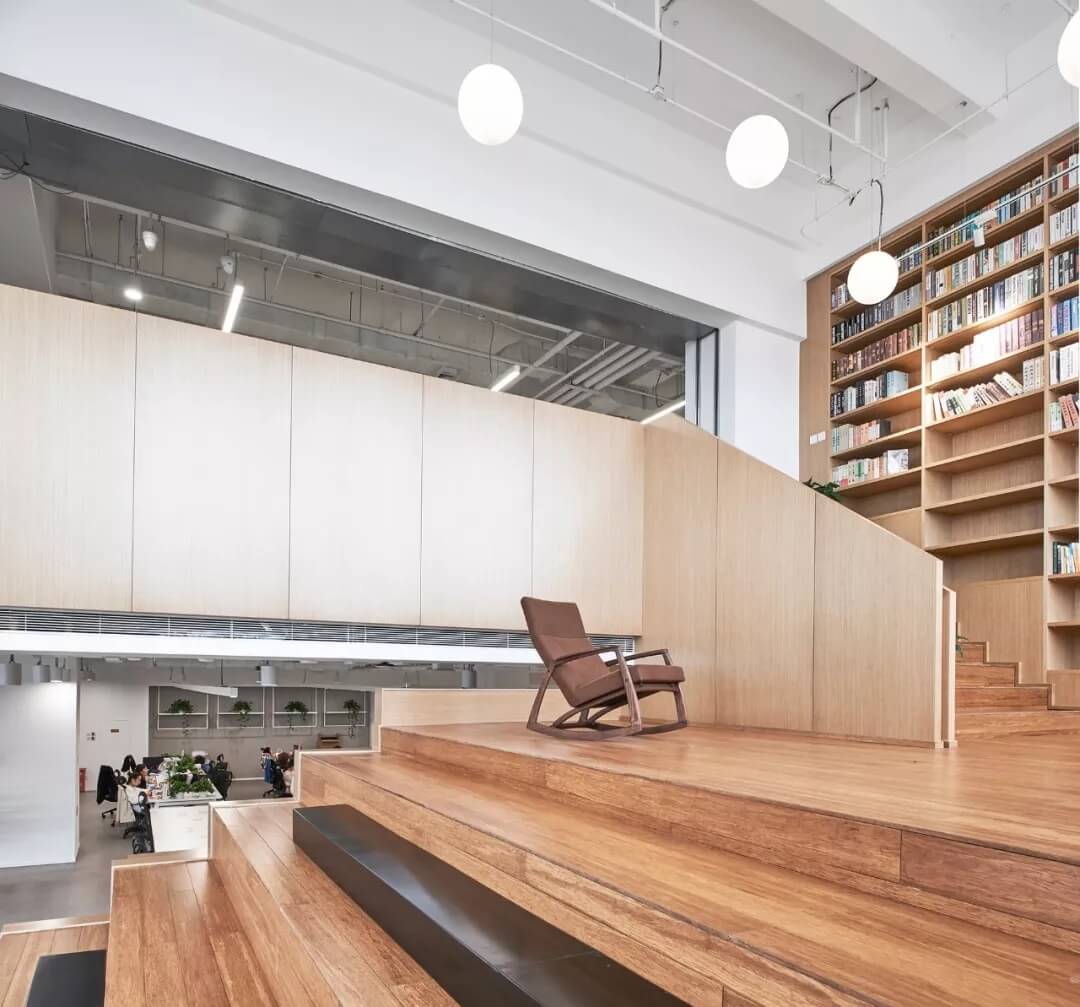 美不止于外在,更追求內心。8-9層是新氧心靈之約—圖書閱讀區(qū)。木飾面板大樓梯,高懸掛的裝飾燈,營造出安靜舒適的閱讀氛圍,同時也可以作為小型沙龍或讀書分享活動場所。