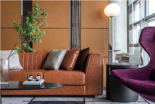 以寶格麗風(fēng)的橙色和黑色構(gòu)設(shè)起空間的精尚品位,同時(shí)通過薄暮紫和優(yōu)雅棕營(yíng)造舒適雅致的氛圍。