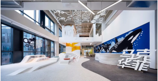 尖端時尚品牌馬克華菲(Mark Fairwhale)的總部位于上海。該項目基于品牌文化基因,主要運用了水與鯨魚的主題元素,并且創(chuàng)造出靈活而又敏捷的工作空間。同時借此呼應(yīng)其新鮮年輕的風(fēng)格定位。