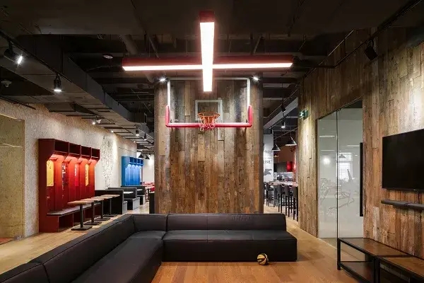 以體育為主的辦公室也隨處可見顯著的運(yùn)動(dòng)基因:1比1籃球架、懸掛著各類巨星簽名球衣的辦公座椅、德約科維奇的畫像、還有員工最愛的乒乓房。