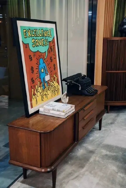 無論是在公司入口處設(shè)置畫廊,承辦各種新興藝術(shù)家的藝術(shù)展,還是員工親自購置獲得過歐洲紅點(diǎn)藝術(shù)大獎(jiǎng)的桌椅為公司環(huán)境增添色彩,都無不看出JCGC作為廣告創(chuàng)意營(yíng)銷公司,在細(xì)節(jié)上對(duì)藝術(shù)、對(duì)創(chuàng)意的重視。
