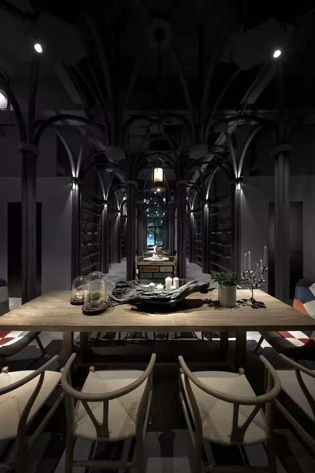 原建筑空間剛剛結束了破敗的工業(yè)廠房的狀態(tài),業(yè)主接手時還是一片狼藉。項目的運營團隊希望打造集餐飲區(qū)、咖啡區(qū)、音樂活動區(qū)及一個塔羅牌活動區(qū)為一體的復合空間。設計團隊從項目的主題概念中所散發(fā)的神秘色彩入手,希望在偏精神層面的建筑中汲取靈感,翻閱并走訪了大量的哥特式建筑,從挺拔向上的建筑空間結構中體會與神對話的力量感,然后將其移植到這個項目中,以當代的構成形式,向傳統(tǒng)建筑致敬。