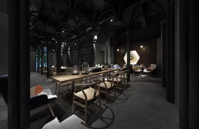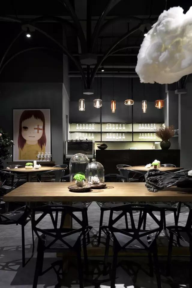 考慮到經濟性、便捷的施工工藝與周期,清水混泥土成為了主要的材質。由哥特式建筑引發(fā)的圓管結構設計,在空間中重組、穿插、演繹了一場哥特式感覺的舞臺劇,其高潮莫過于咖啡區(qū)的一朵白色漂浮的云。設計最大限度的融入了環(huán)保概念,不僅所有的材料都是可以回收利用的,而且定制安裝的方法既減少了現場的污染,也節(jié)省了施工周期。設計團隊選擇了很多具有趣味性的當代藝術作品來為空間注入時尚而放松的氣質,輔以層次豐富的燈光效果,將空間打造成了一個優(yōu)雅而又風趣的雅皮士的感覺。