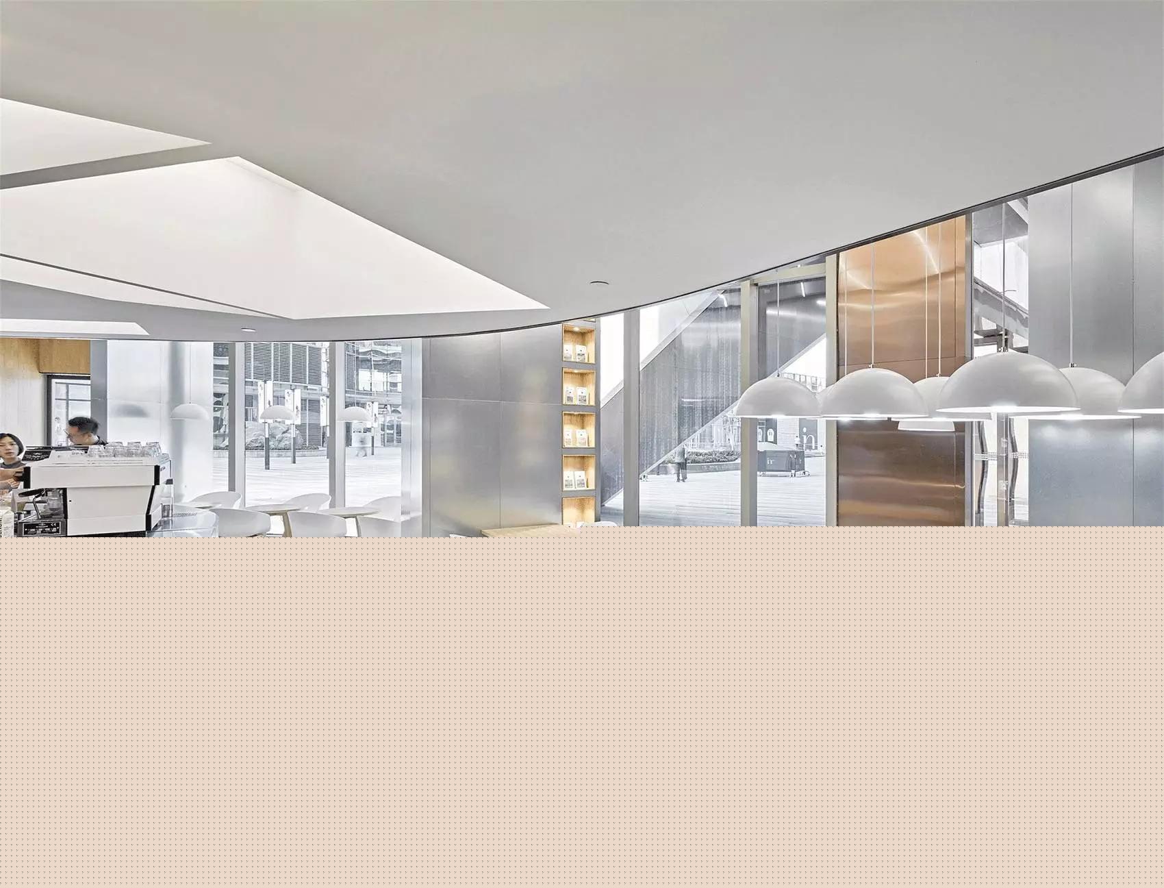 制作精品咖啡的過程極具儀式感和觀賞性,因此繪造社以“舞臺與看臺”作為 GREYBOX COFFEE 成都店空間布局的概念。整個咖啡館被分為內(nèi)外兩個弧形空間。內(nèi)弧是舞臺,被鍍鋅鋼板包裹的壓低吊頂和吧臺貫穿整個長條空間,壓縮出一個連續(xù)通透的“舞臺”,在吧臺后深灰色墻面的襯托下,專業(yè)精致的器皿、咖啡師的嫻熟手法、咖啡的形態(tài)轉(zhuǎn)化,一起上演著精彩的演出。這里的空間尺度只屬于上半身。外弧保留了4米通高,利用原有的立柱做成金屬盒子,作為展柜、通道、入口,形成空間的序列和節(jié)奏,并分割出或大或小的座位區(qū)域,為前來享用精品咖啡的顧客提供了靈活的體驗(yàn)空間。